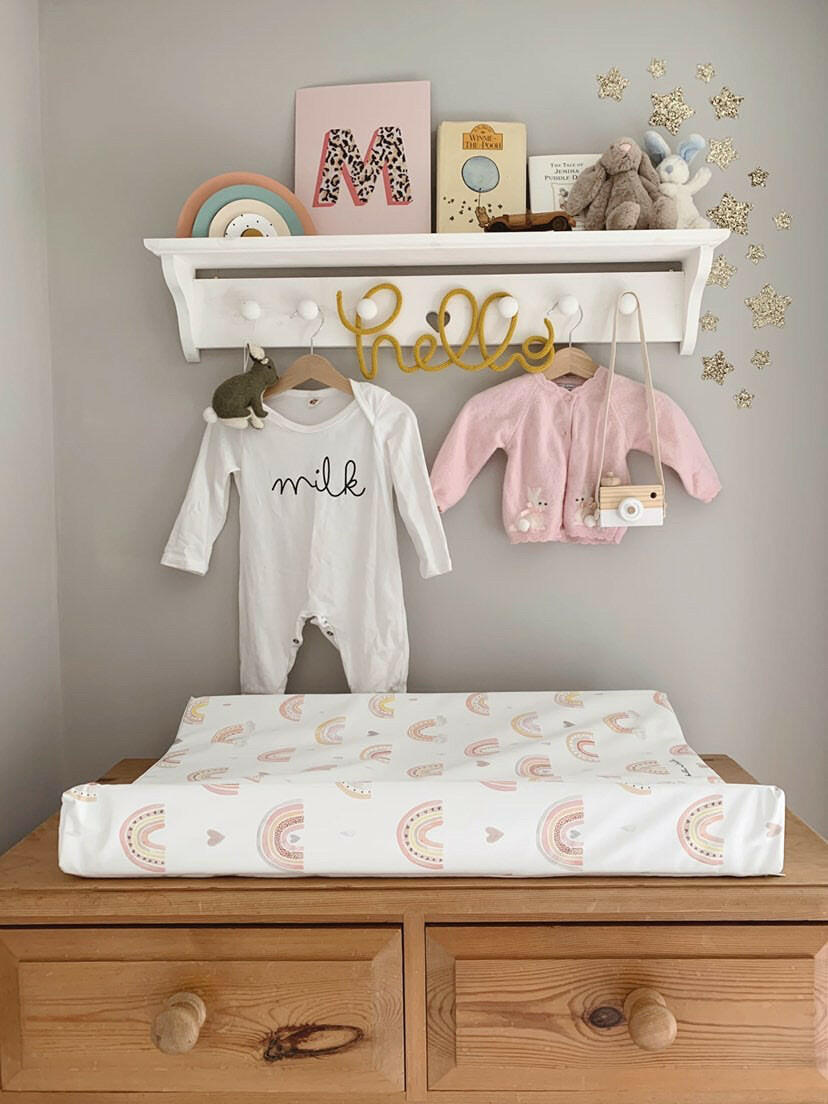 Add a splash of colour to your nursery with our Rainbow Beau Changing Mat. Featuring a vibrant hand-painted rainbow design, this mat is perfect for creating a cheerful and welcoming rainbow-themed nursery. Designed with your baby’s safety and comfort in mind, this anti-roll changing mat makes nappy changes a breeze for parents and babies alike.