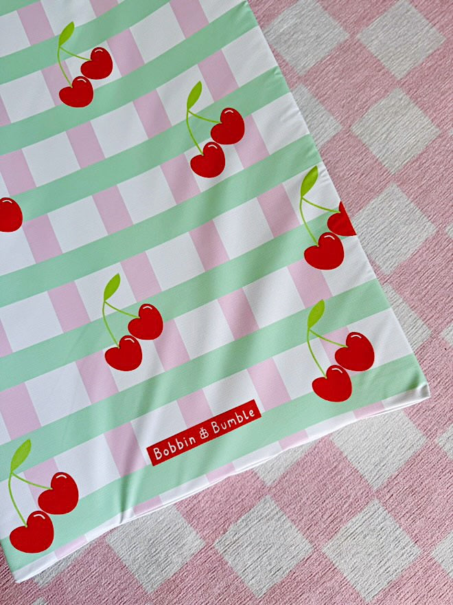 Add a pop of colour to your nursery with our exclusive Cherry Print Wedge Changing Mat! 🍒 This bold, one-of-a-kind design features vibrant cherries on a stylish pink and green checkered background, making it a standout piece for modern nurseries.