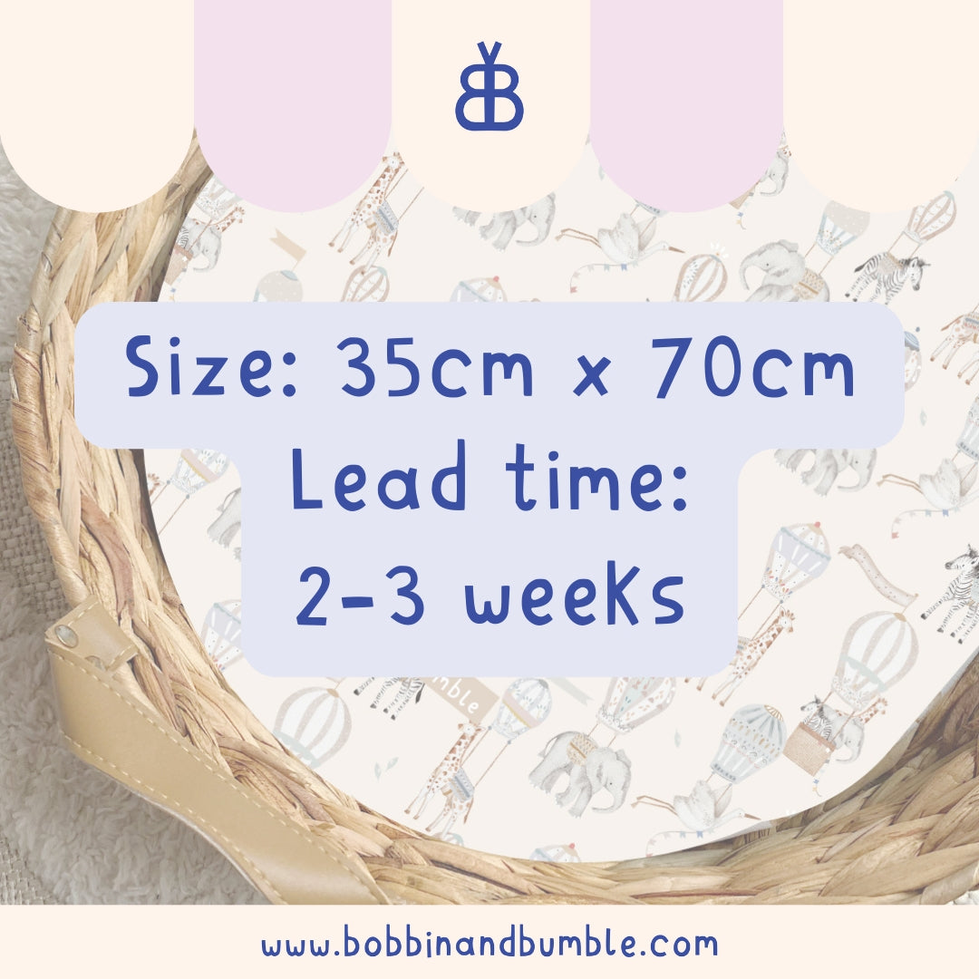 Beige Hot Air Balloon Animals PVC Changing Basket Liner | Bobbin and Bumble - 30cm x 70cm (Fits Olli Ella) is backordered and will ship as soon as it is back in stock.