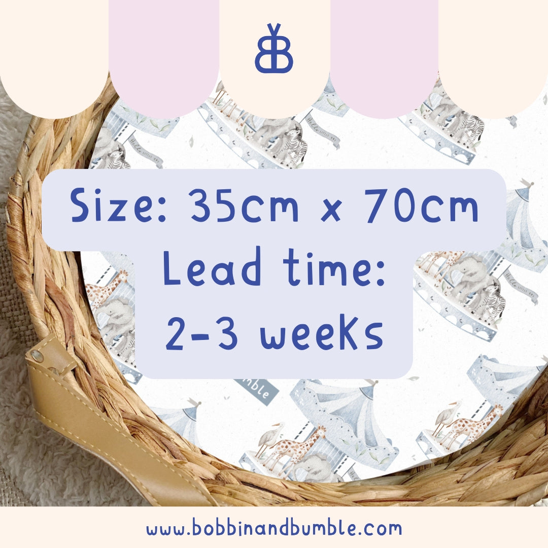 All of our changing basket liners are made to order and generally dispatched within 2 weeks via Evri. Please see our Shipping Page for the most up-to-date information.