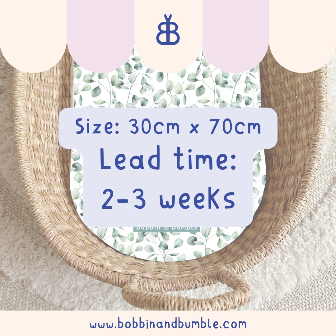 All of our changing basket liners are made to order and generally dispatched within 2 weeks via Evri. Please see our Shipping Page for the most up-to-date information.
