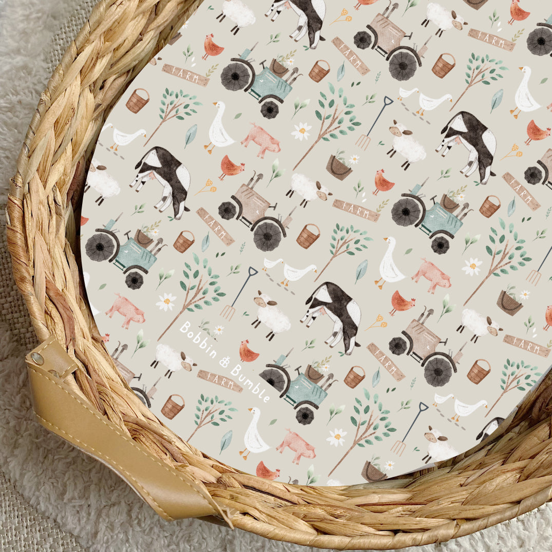 Bring the charm of the countryside to your nursery with our Ginger's Farm PVC Changing Basket Liner. Featuring adorable farm-themed illustrations, including tractors, cows, sheep, chickens and geese.