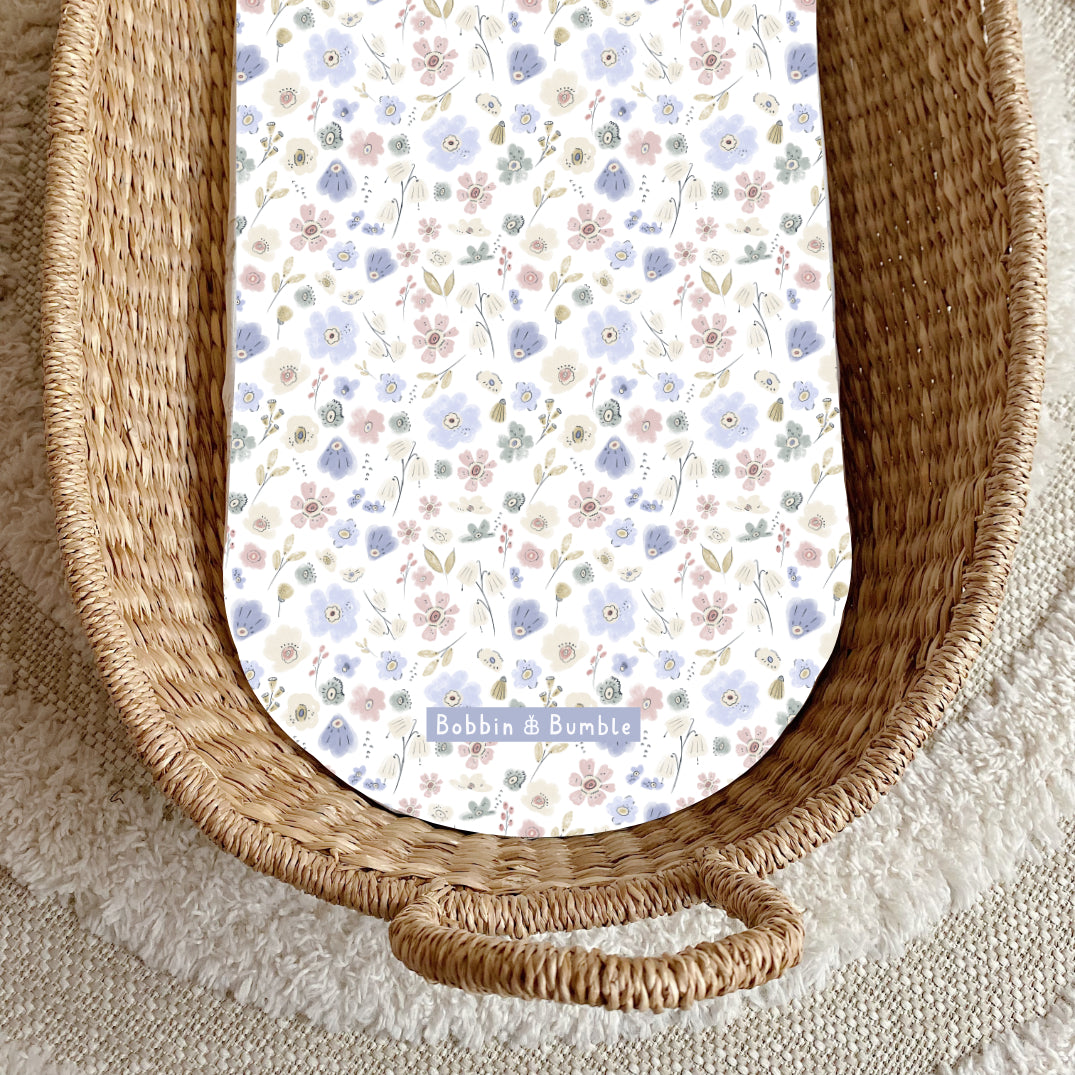 Lilac Wildflowers PVC Changing Basket Liner | Bobbin and Bumble