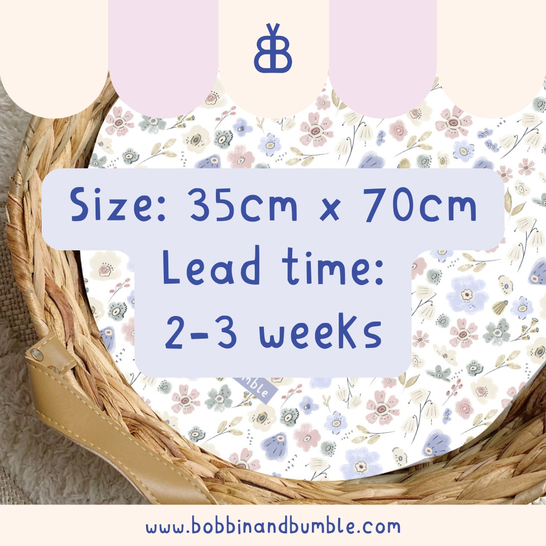 All of our changing basket liners are made to order and generally dispatched within 2 weeks via Evri. Please see our Shipping Page for the most up-to-date information.