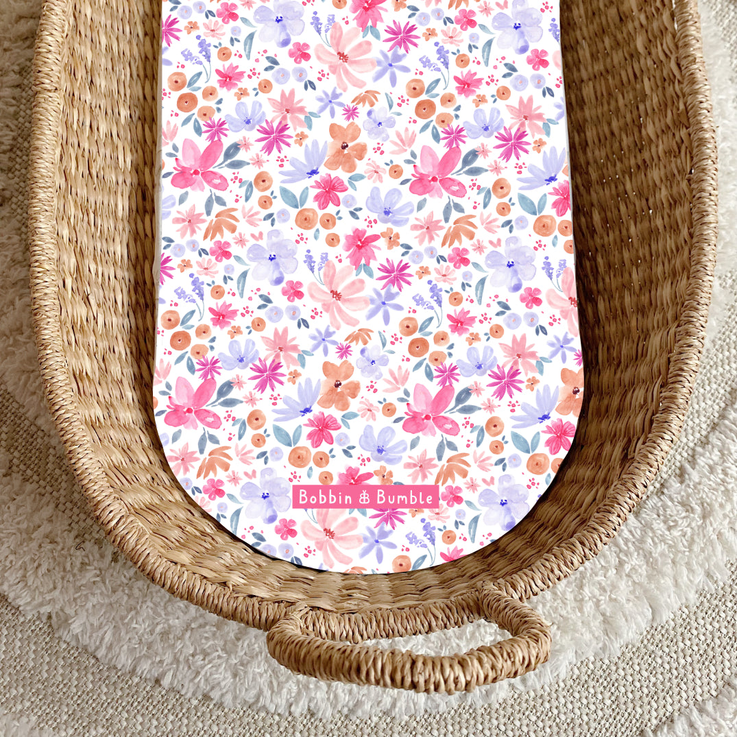 Magenta Pink Floral PVC Changing Basket Liner | Bobbin and Bumble