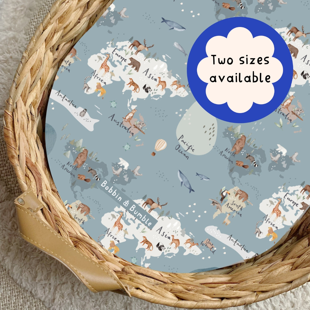 Bring a sense of exploration to your baby’s changing area with our One World PVC Changing Basket Liner. Featuring a beautiful world map design, this liner is perfect for inspiring curiosity and adventure in your nursery.