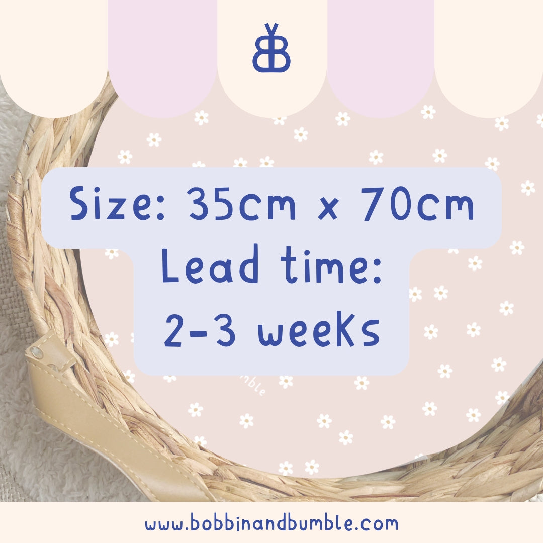 Available in the two most popular sizes to fit the most common changing baskets, these liners come in a range of stylish prints and colours. Made to order with a lead time of 2-3 weeks, you can choose from our listed designs or any print featured on our website.