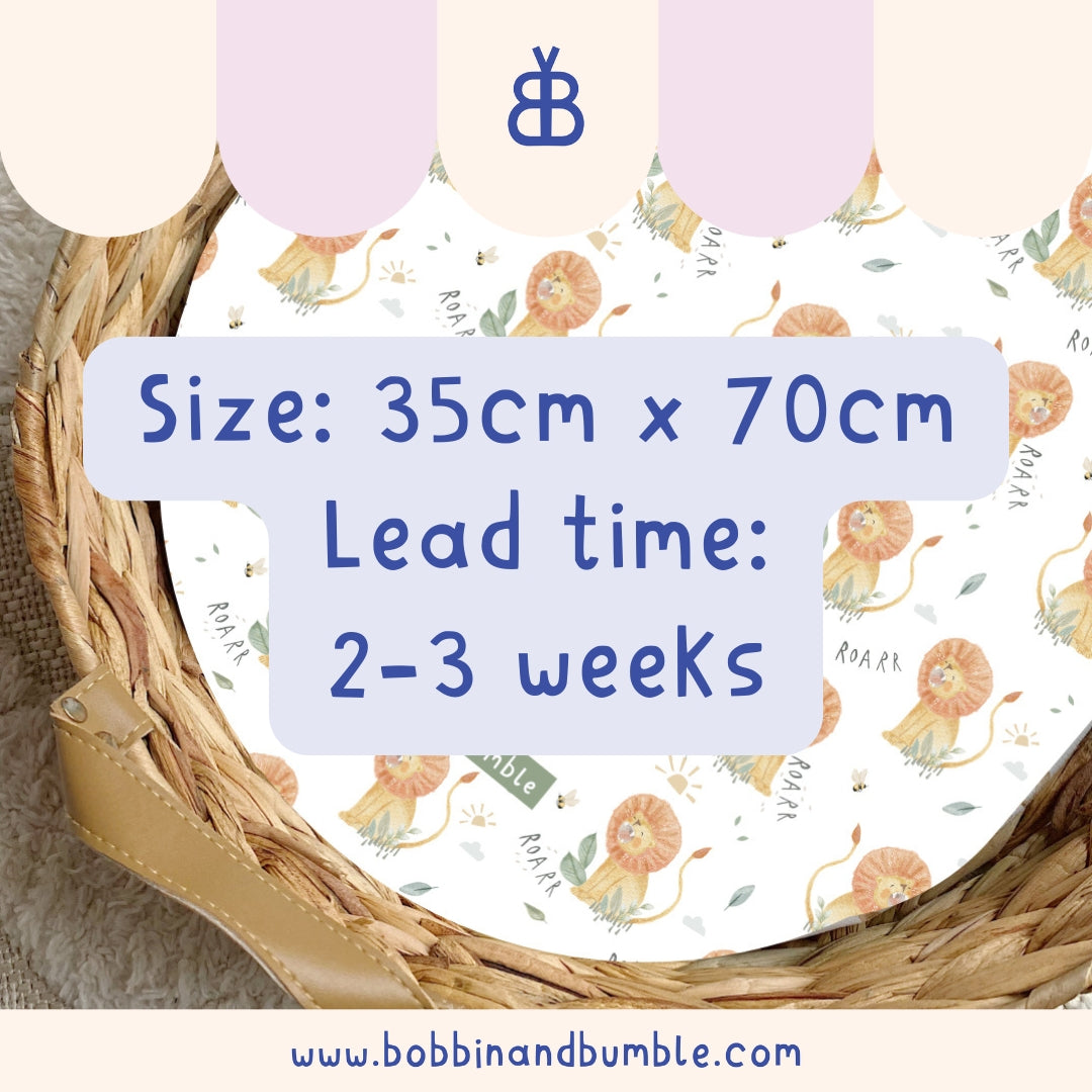 Roary Lion PVC Changing Basket Liner | Bobbin and Bumble - 30cm x 70cm (Fits Olli Ella Nyla) is backordered and will ship as soon as it is back in stock.
