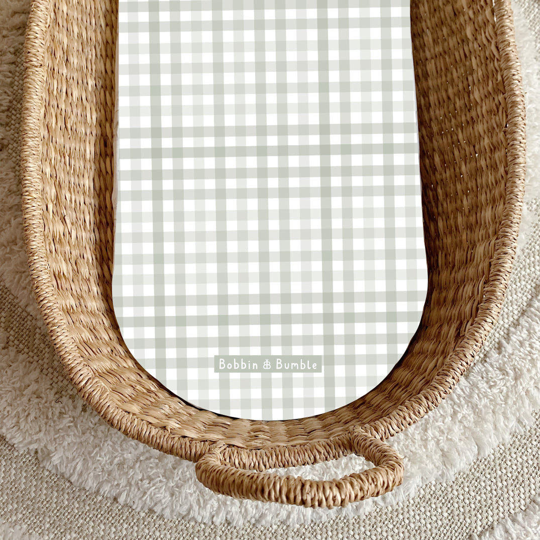Sage Gingham PVC Changing Basket Liner | Bobbin and Bumble