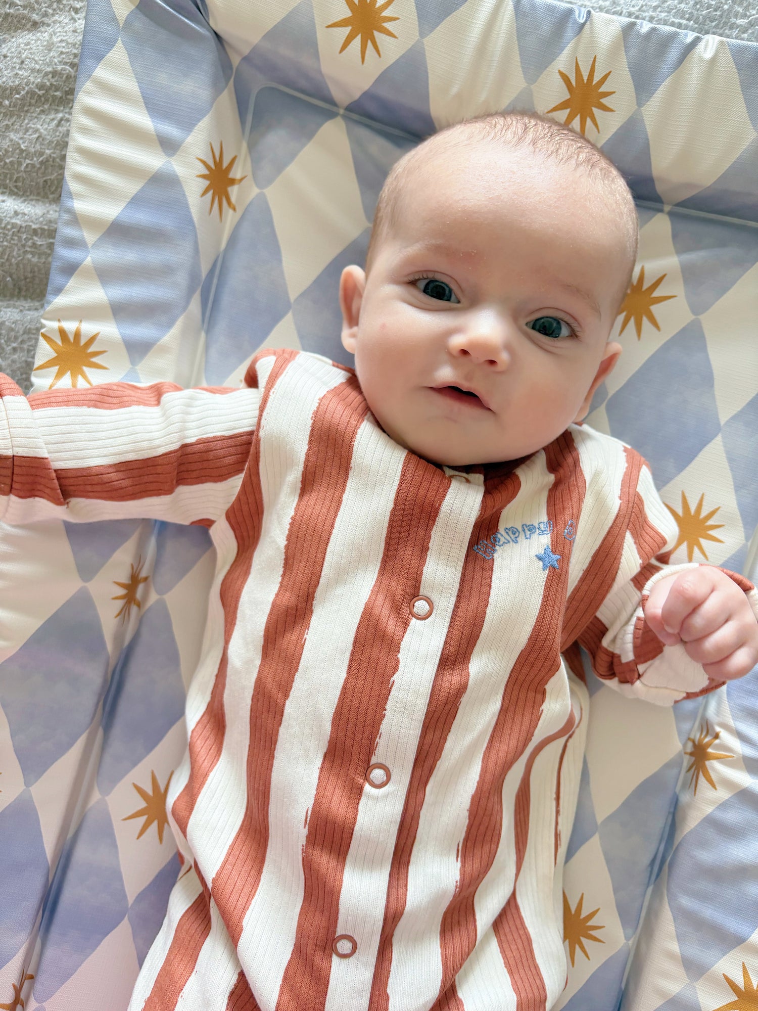 This playful print subtly incorporates colour without compromising style, offering a timeless, gender-neutral design that's super cute. This mat is made from phthalate-free, wipe-clean materials, which means it is as easy to maintain as it is beautiful, perfect for busy parents who want a classic changing mat without compromising on style.