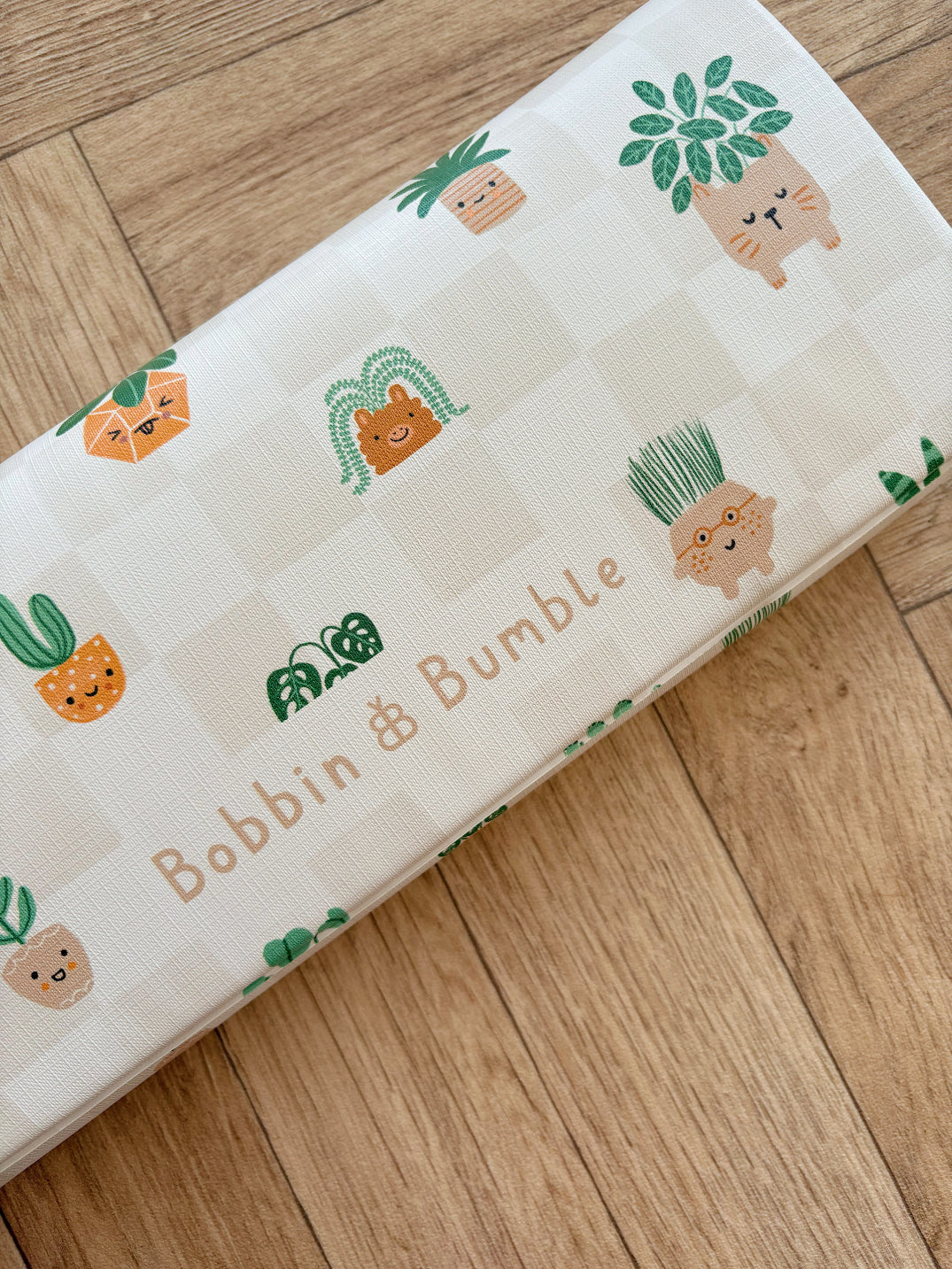 Add a little leafy charm to your outings with our exclusive Potted Plant Travel Changing Mat, available only at Bobbin and Bumble. Featuring adorable illustrated succulents and potted plants, including character pots shaped like llamas, snails, and friendly faces. This fun design is perfect for parents who love a bit of whimsy with their practicality.