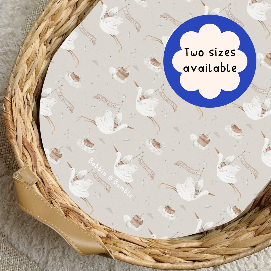 Celebrate your little one's arrival with our Welcome Baby PVC Changing Basket Liner. Featuring a sleeping bear on a storks back carrying a flag that says "welcome baby". This unisex design is a popular choice when purchasing a gift for a new or parent-to-be.