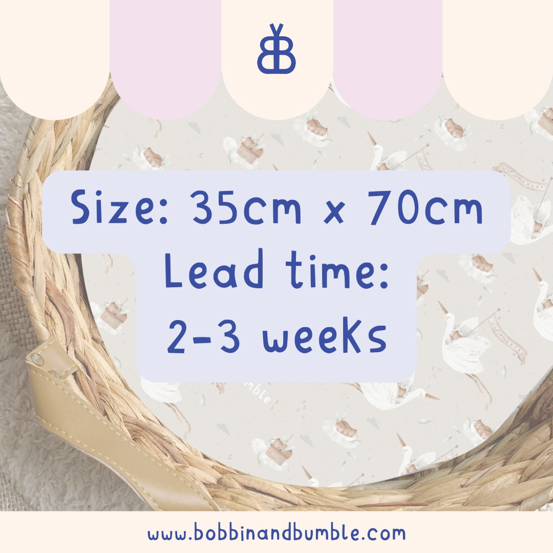 Available in the two most popular sizes to fit the most common changing baskets, these liners come in a range of stylish prints and colours. Made to order with a lead time of 2-3 weeks, you can choose from our listed designs or any print featured on our website.