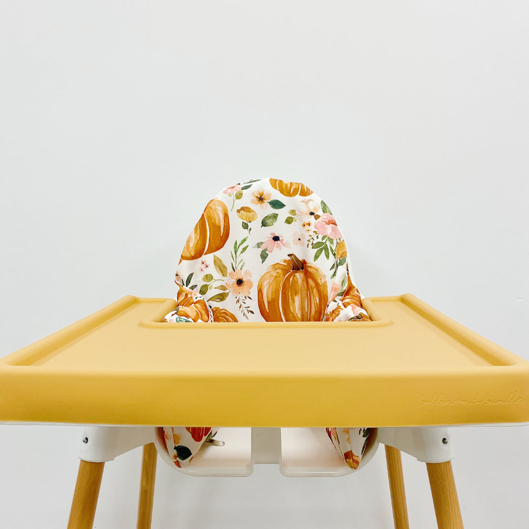 If you love decorating for the seasons then why not also accessorise your IKEA highchair ready for autumn and Halloween?! Our beautiful autumn floral pumpkin print IKEA highchair cushion cover will instantly glow up your ANTILOP baby high chair. This beautiful autumnal print will look beautiful in your home with all your fall decor.