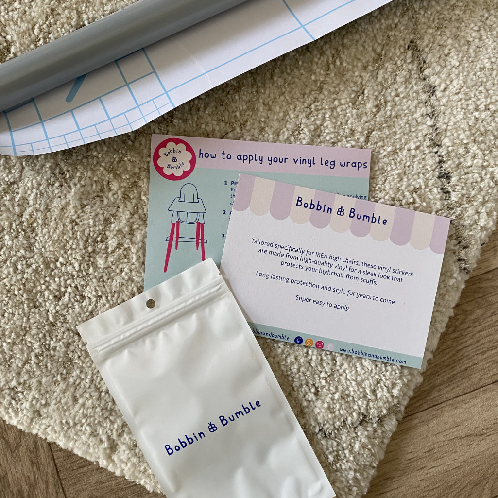 Our Vinyl Leg Wraps for IKEA Highchairs are a stylish and practical solution to protect your highchair legs from wear and tear whilst fully customising your highchair.